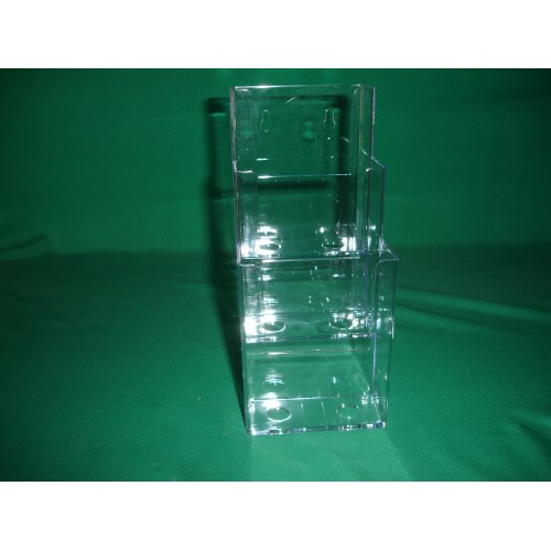 Our clear three pocket wall mount or counter top brochure holder fits trifold literature up to 3 3/4"w.